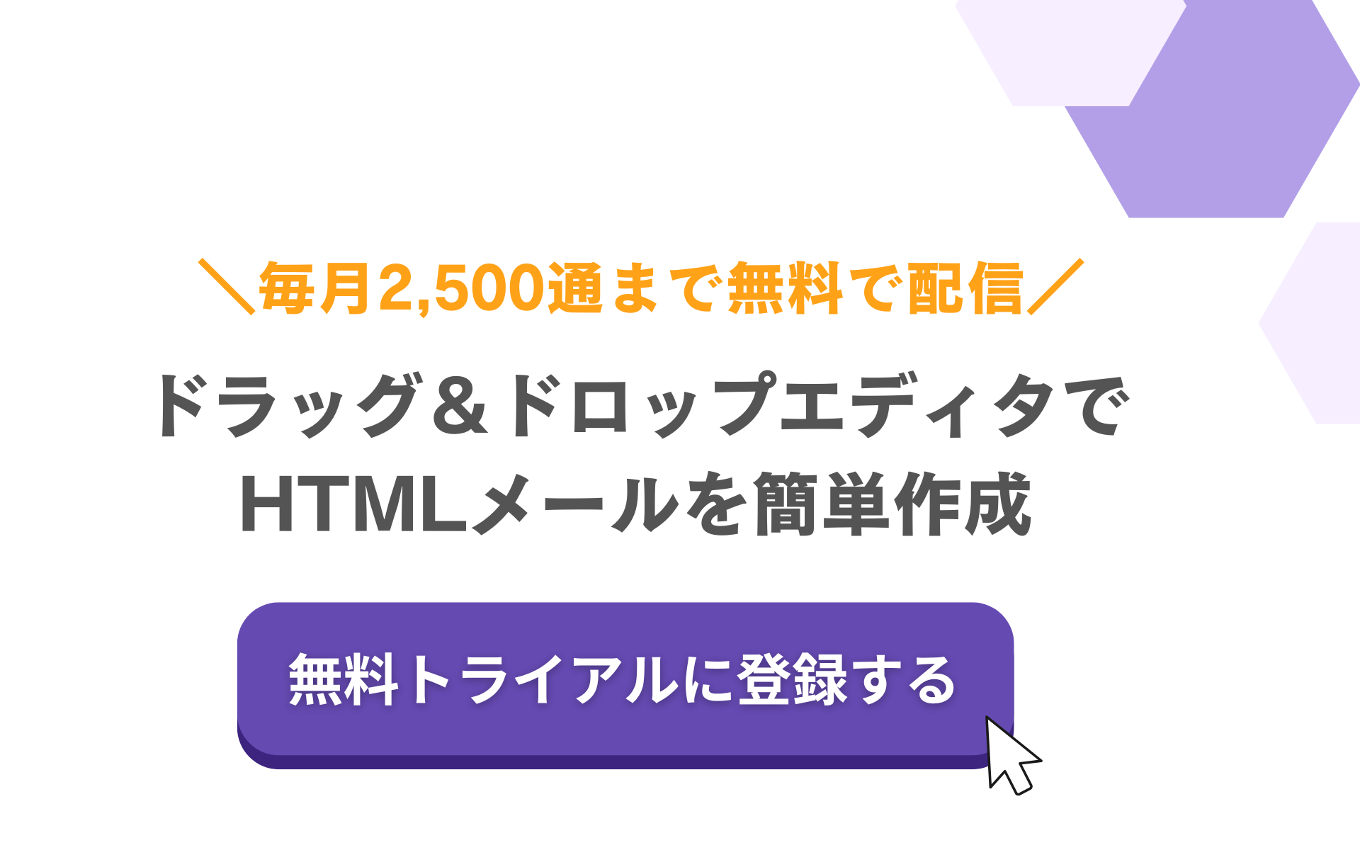 \ 毎月2,500通まで無料で配信!クレジットカードの登録不要で1分で開始できます /