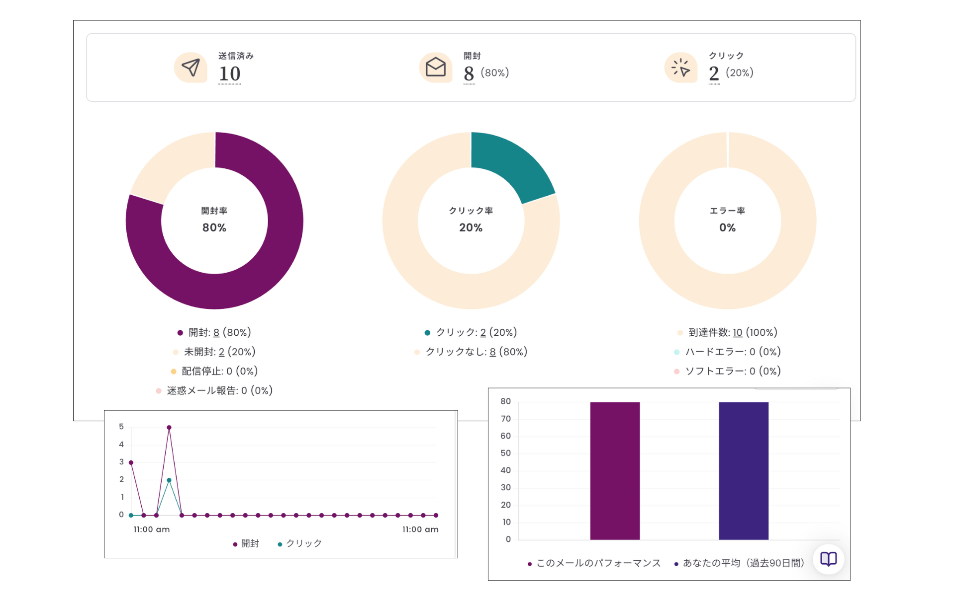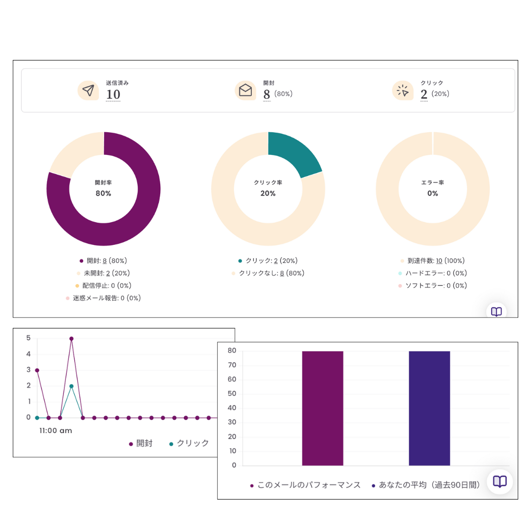 レポート機能から確認できます。開封者だけでなく、未開封者やエラー、配信停止アドレスなども確認可能です。